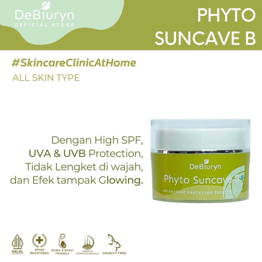 Toko Ini Juga mempunyai Produk lain yaitu Debiuryn Phyto Suncave B - UV - Intense Protector Cream - SPF 30 - Sunscreen - Sunblock - Tabir Surya - Tirai Matahari Wajah - 10gr