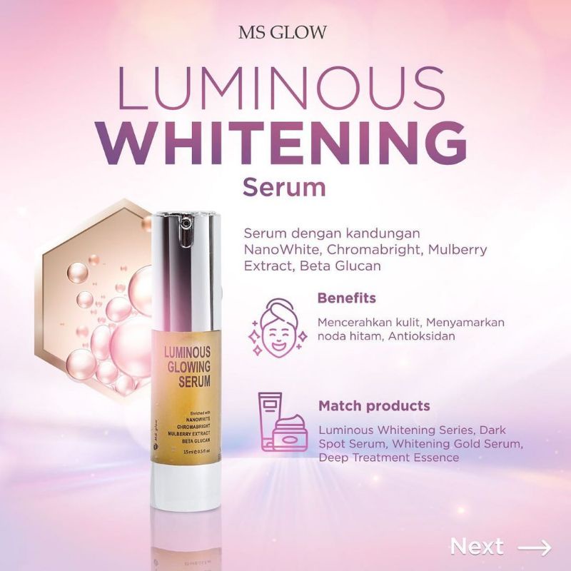 Toko Ini Juga mempunyai Produk lain yaitu SERUM LUMINOUS Whitening Ms Glow ORIGINAL / Luminous Glowing Serum
